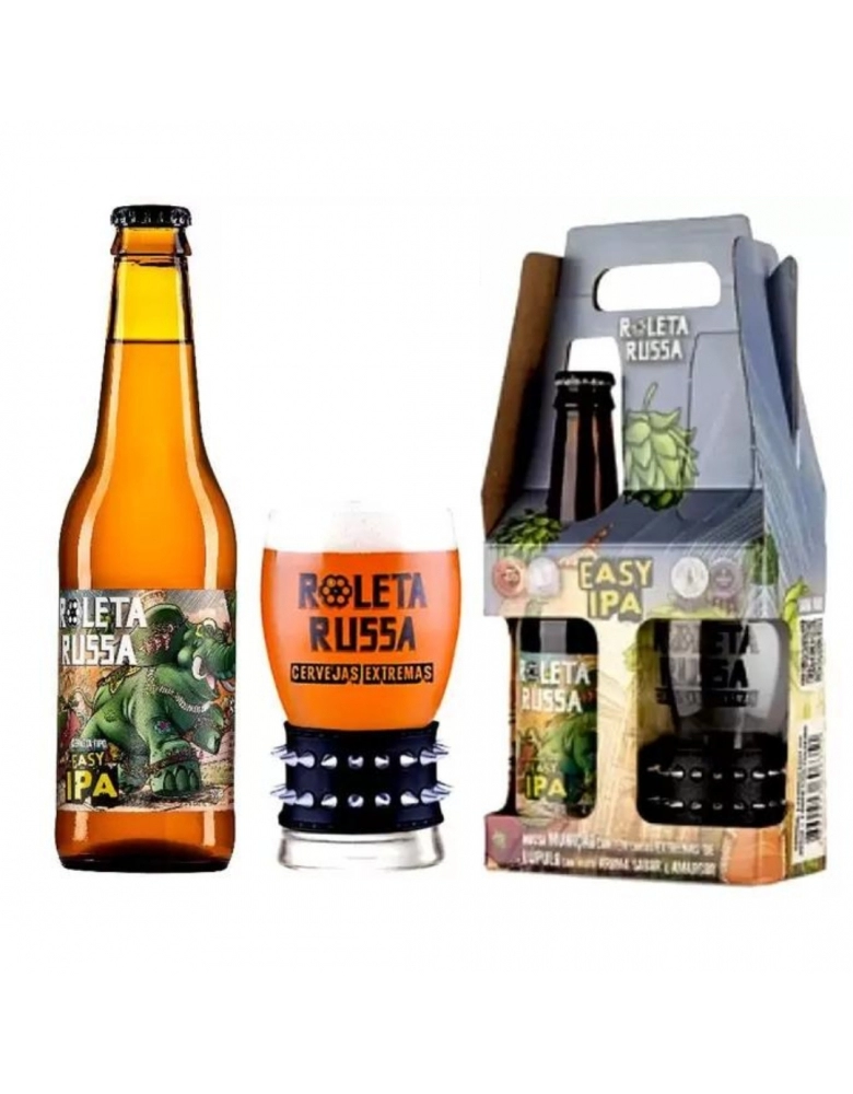 Este Kit Contém:• 1 Cerveja Roleta Russa Easy IPA 355ml• 1 Copo Exclusivo Roleta Russa Pulseira